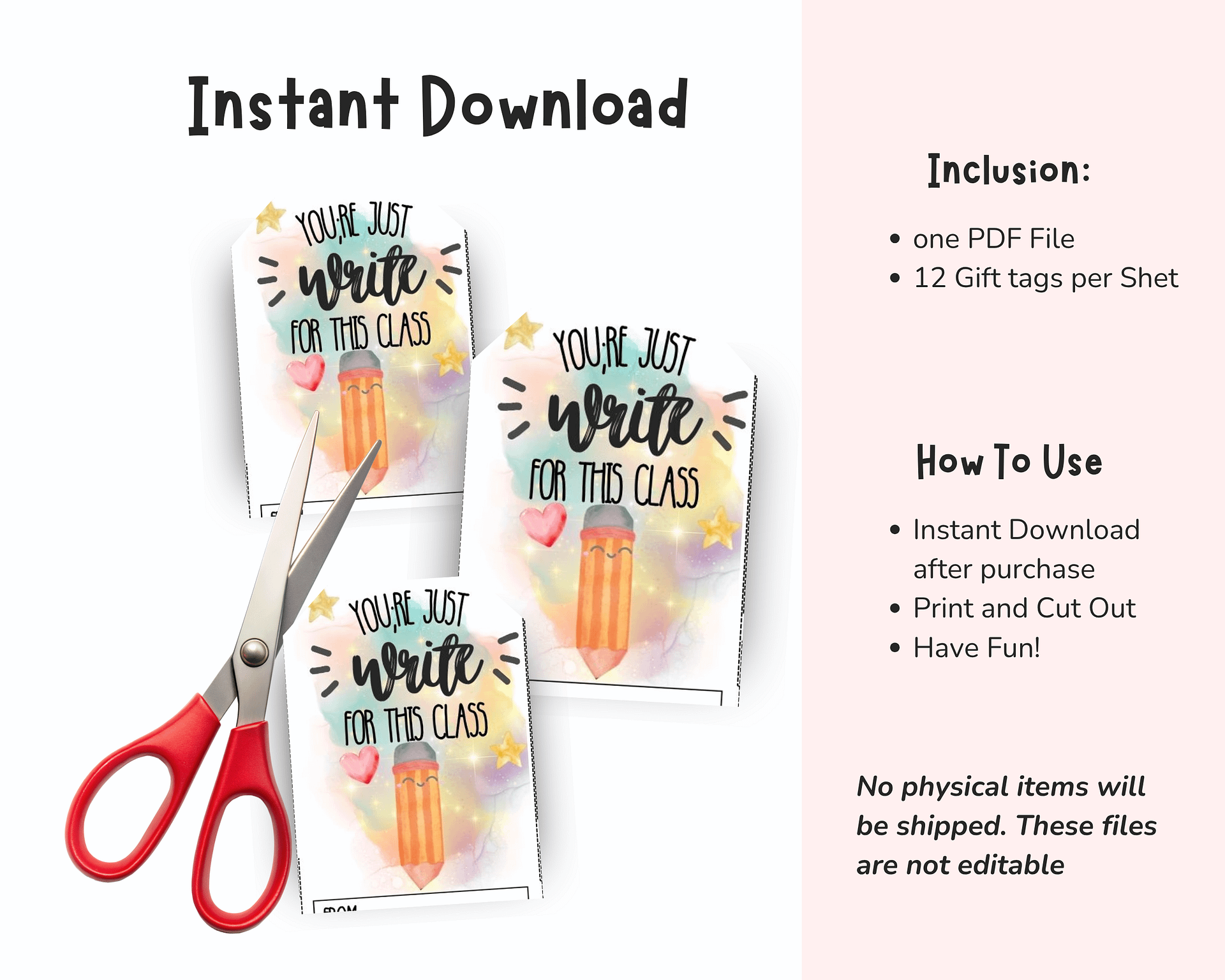 Printable back to school gift tags from teacher to student